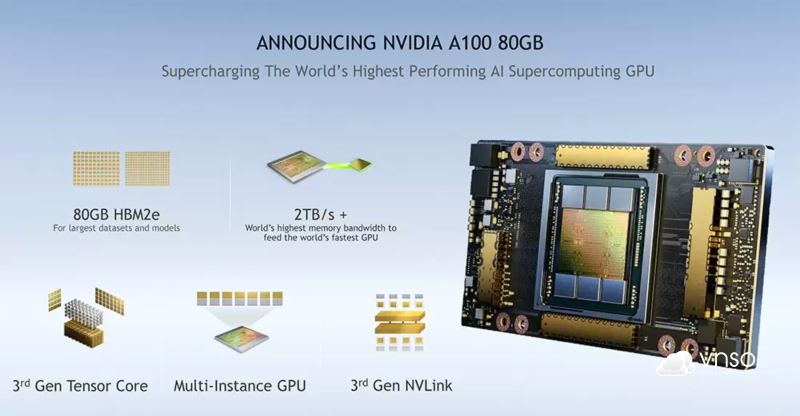 - VRAM lên đến 40GB hoặc 80GB
